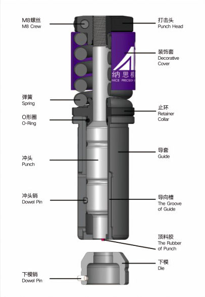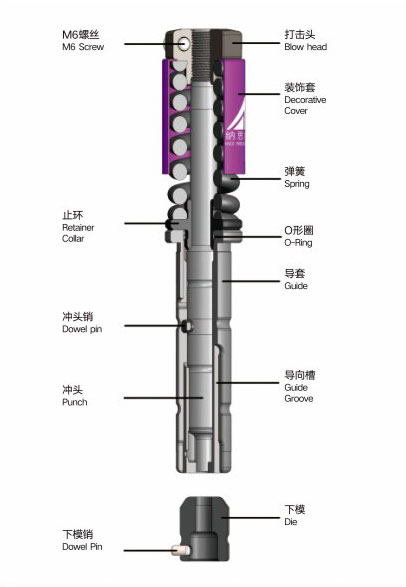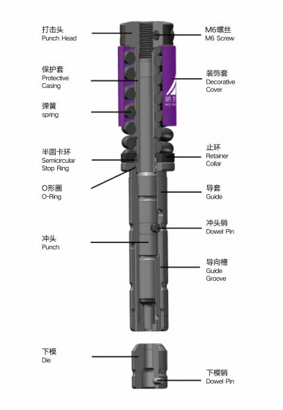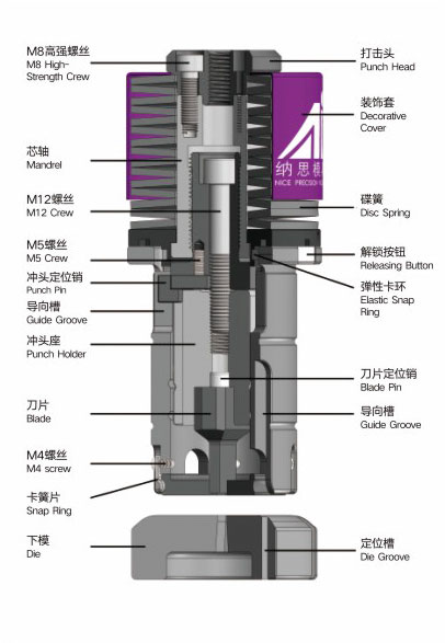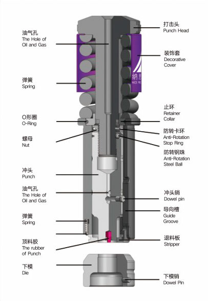 • 所有沖頭刃口均采用特種的高速工具鋼,全部經(jīng)真空熱處理,硬度HRC60°-63°
