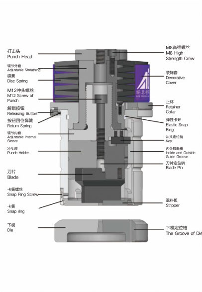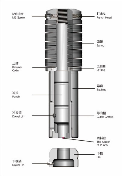 • 退料板鎖定彈簧片采用優(yōu)質(zhì)彈簧鋼,不易折斷;退料板鎖緊螺釘特殊鋼定做,拆裝使用高性能六角扳手,不易滑牙