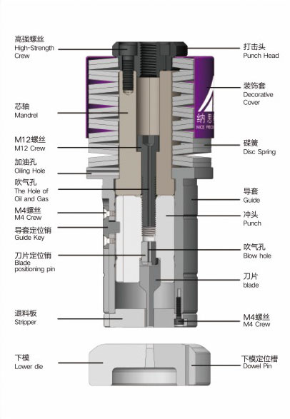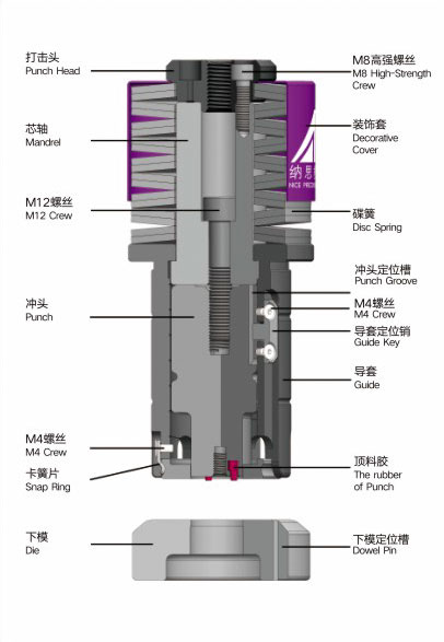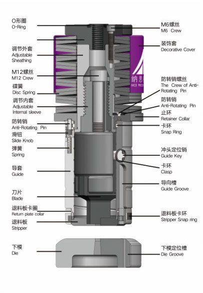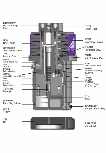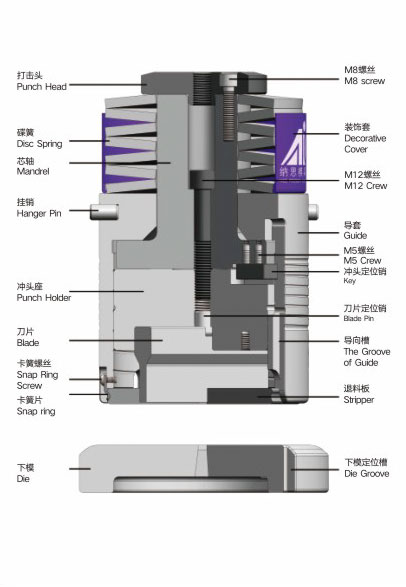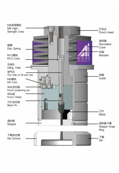 • 下模采用優(yōu)質(zhì)模具鋼,全部真空熱處理,刃口均為防帶料設(shè)計(jì),有效防止廢料反彈、跳料、上浮發(fā)生。